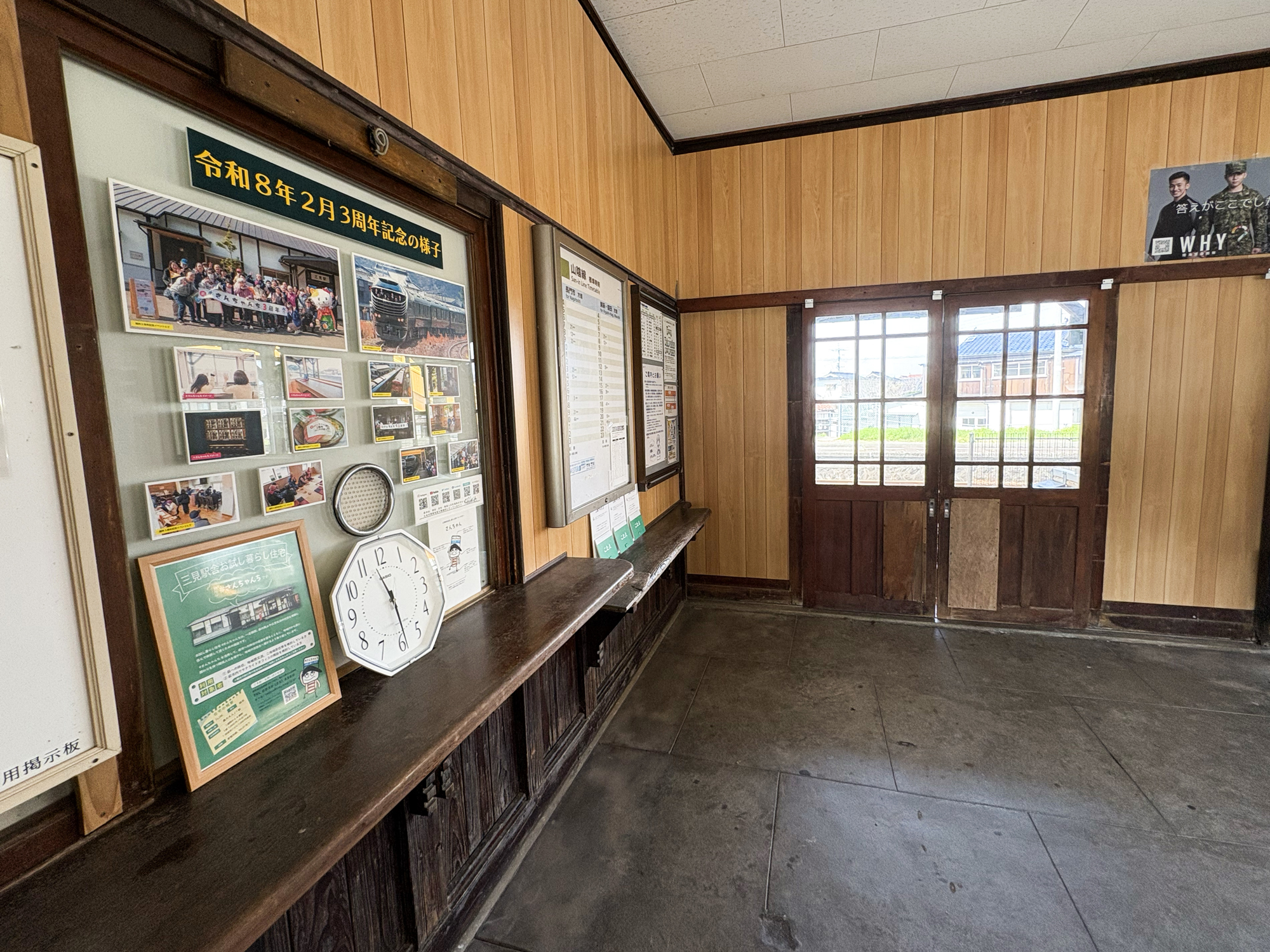 #さんちゃんちと壁を挟んだお隣は、駅の待合室。ここで地元の方と触れ合ったり、時が止まったような静かな空間で田舎感を満喫したり…ゆったりとあなただけの“萩時間”を過ごしてください。